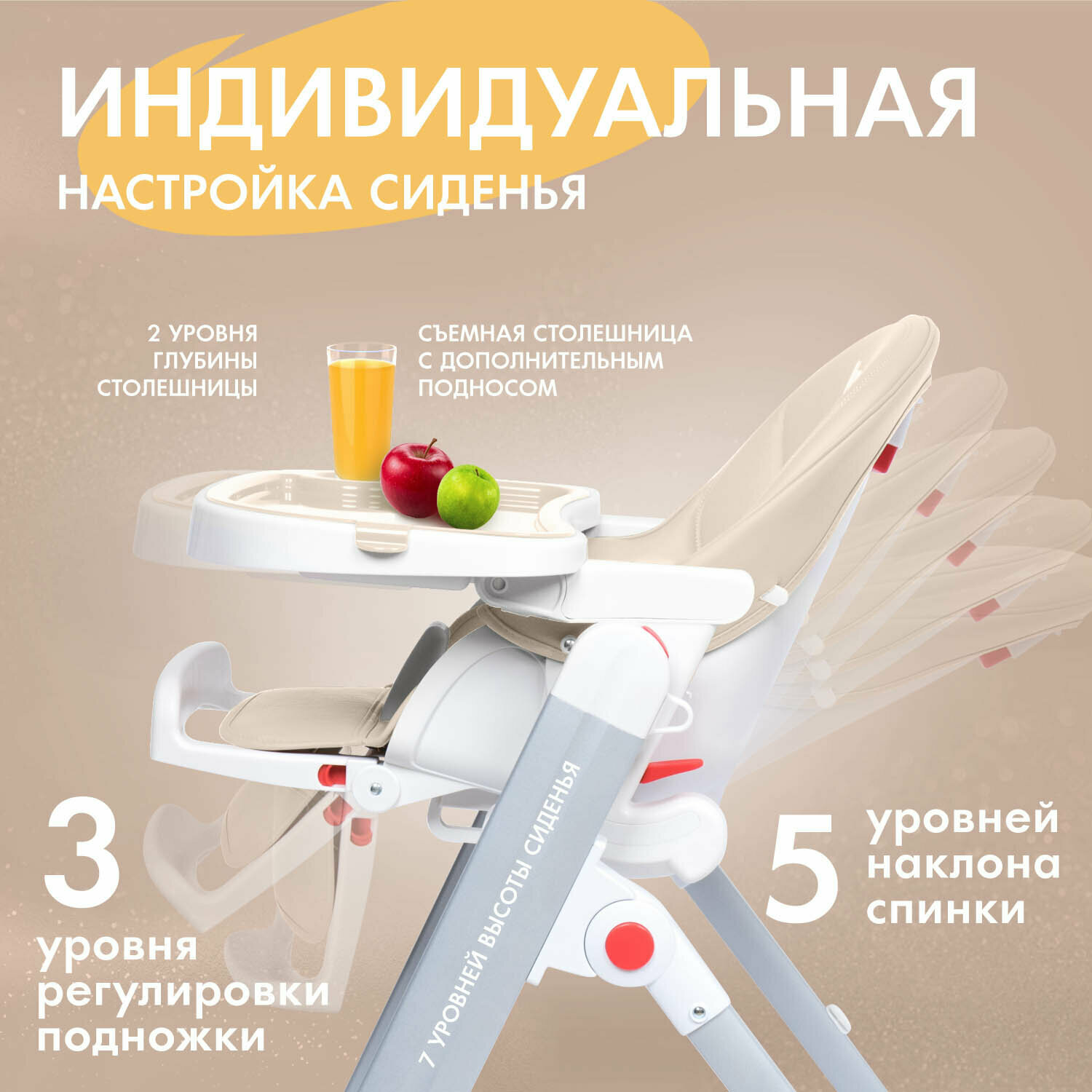 | Дополнительно | съемный столиксъемный подносстолешница с бортикомремни безопасностилежачее положение |