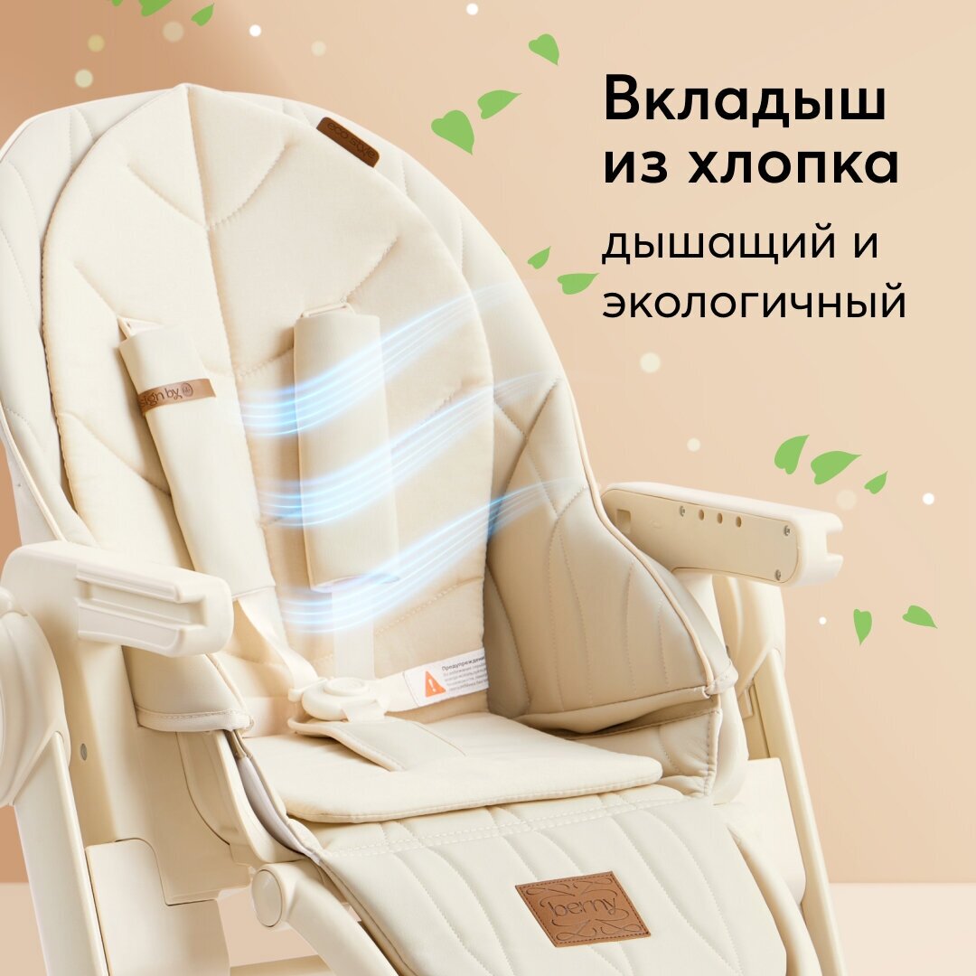 Стульчик для кормления Happy Baby Berny Lux, до 25 кг, шезлонг, экокожа, бежевый