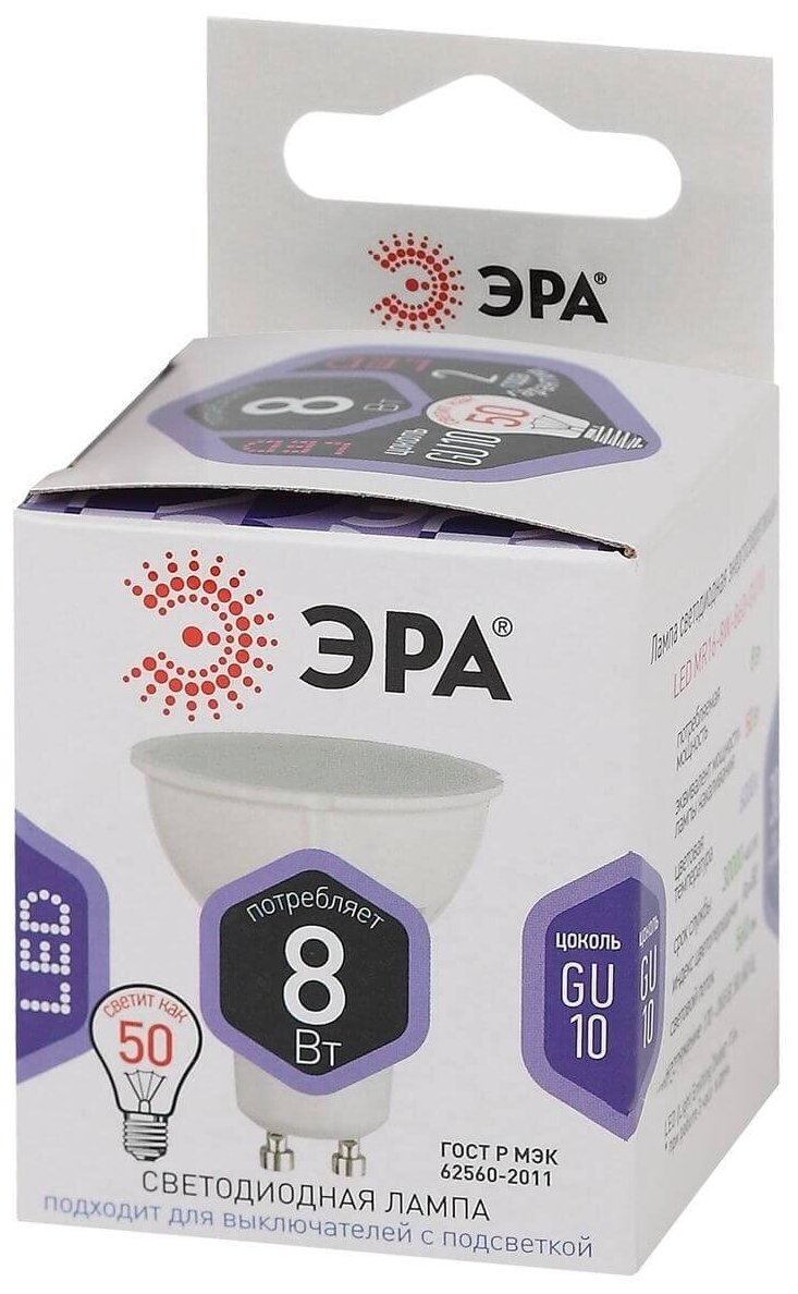 ЭРА LED MR16-8W-860-GU10 ЭРА (диод, софит, 8Вт, холод, GU10) (10/100/4200)