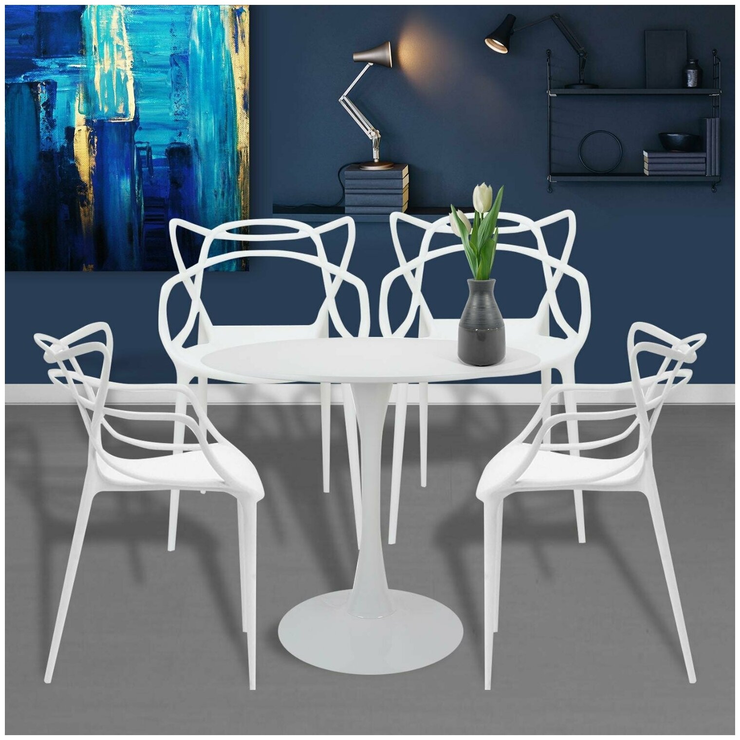 Стулья для кухни 4 шт со спинкой пластиковые Masters белый