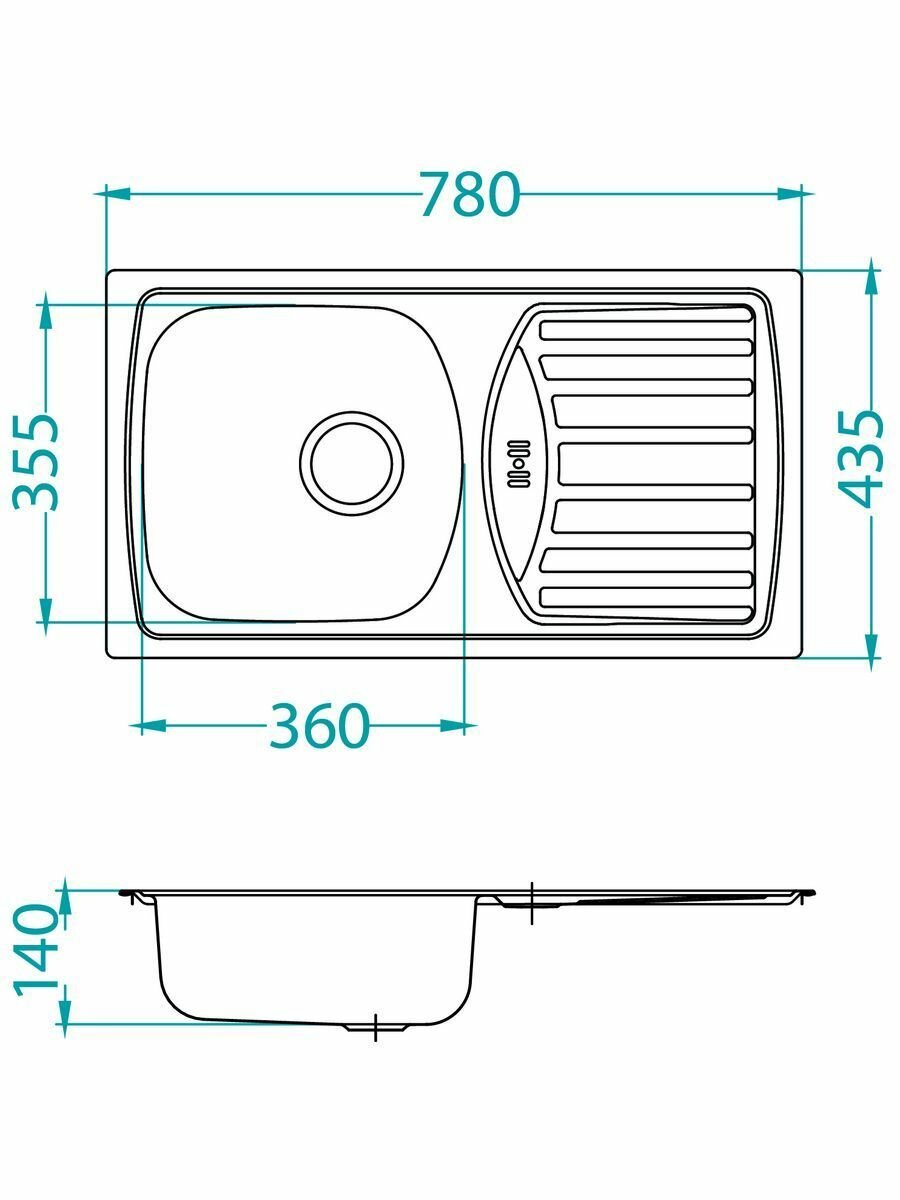 Кухонные мойки Мойка ALVEUS BASIC 150 NAT-90 780X435 в комплекте с сифоном
