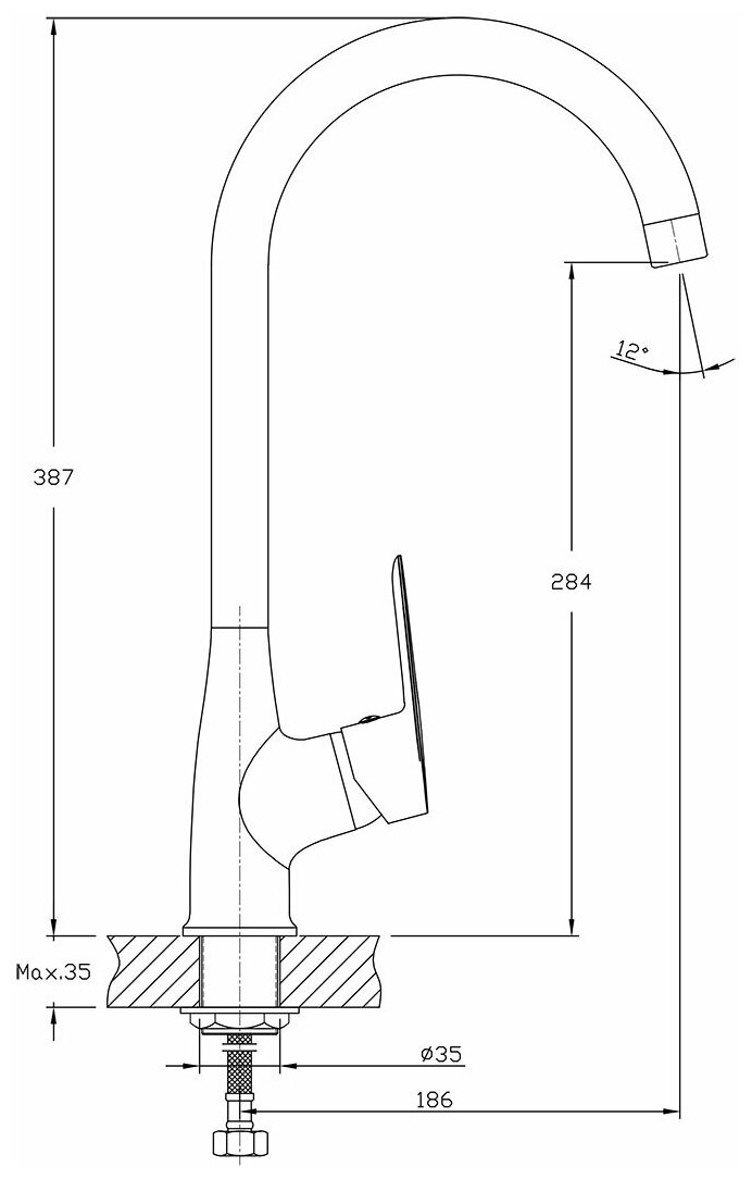 Смеситель для кухни боковой GRANFEST D-35mm (черный) Z3424