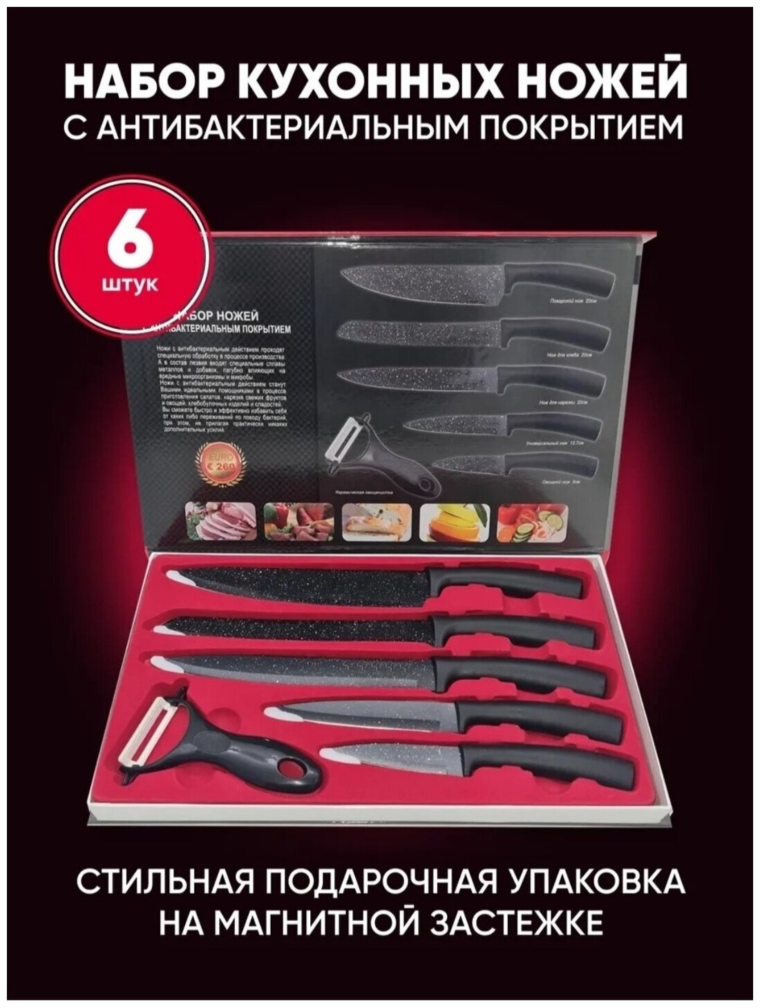 Наборы ножей Набор кухонных ножей эмран с антибактериальным покрытием / Набор из 6 предметов, KW-00337