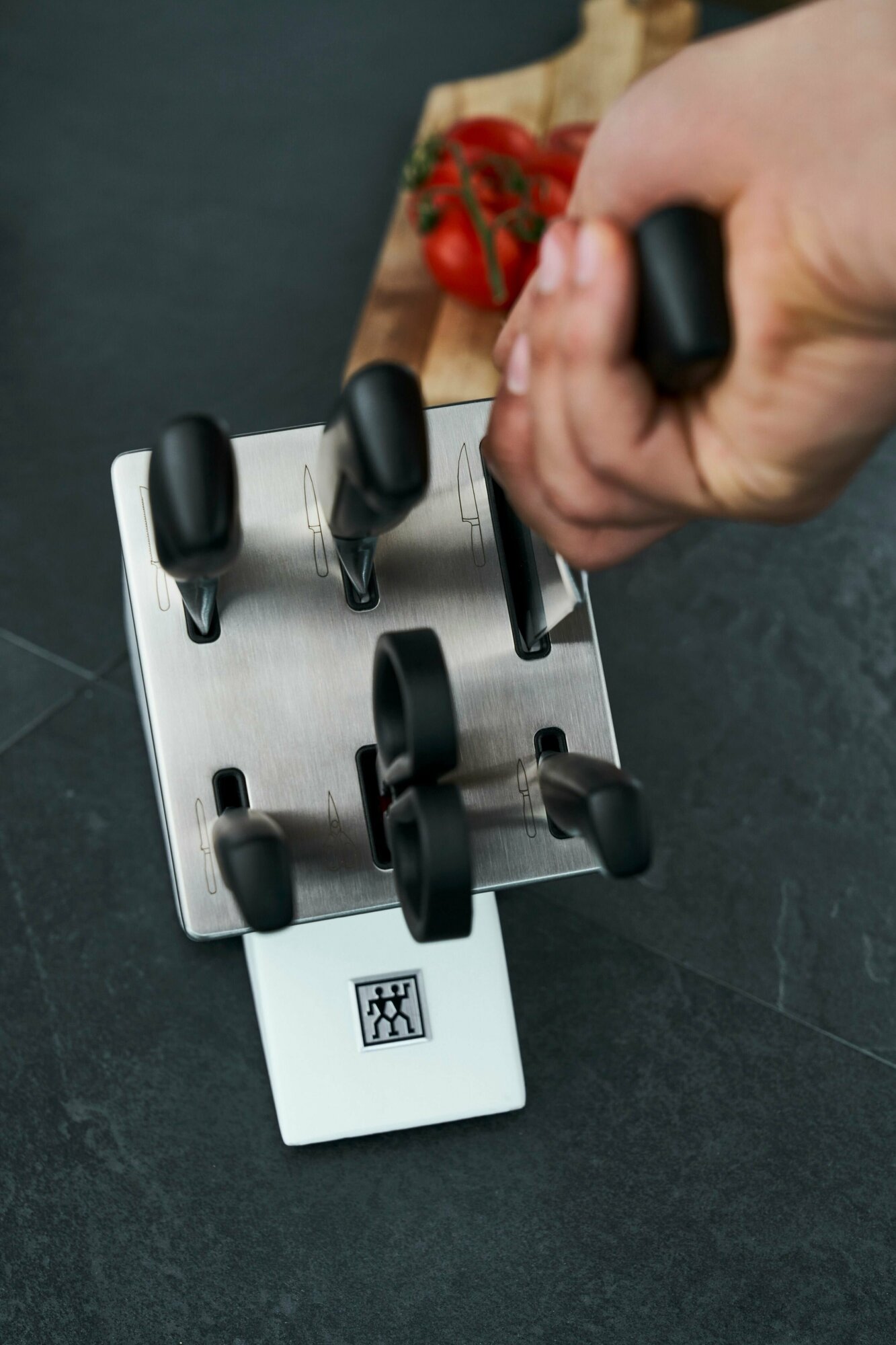 Лучшие цены. Острые ножи-это безопасные ножи: при использовании они требуют гораздо меньшего усилия и не скользят. Отныне об оптимальной остроте ваших ножей позаботится специальный блок ZWILLING SharpBlock с технологией KIS из линейки ZWILLING Four Star. Самозатачивающийся блок не только постоянно заботится о остроте, но также защищает ножи и обеспечивает их безопасное хранение. Магазины в вашем городе.
