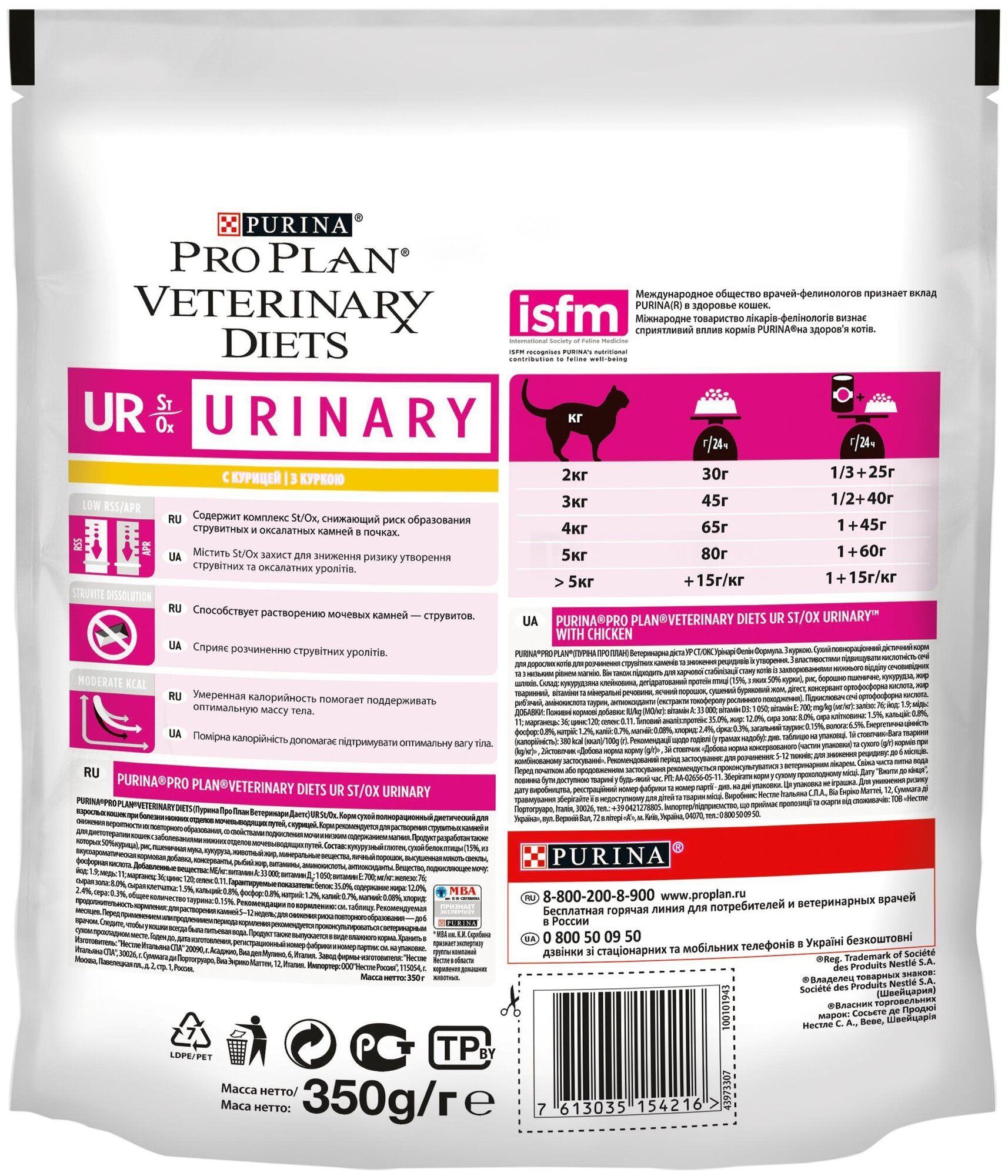 Корм для кошек Сухой корм для кошек Purina Pro Plan Veterinary Diets UR St/Ox Urinary, при болезни нижних отделов мочевыводящих путей, с курицей, 2 шт. х 350 г