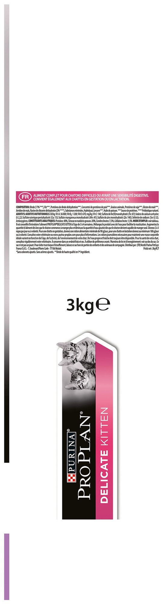 Сухой корм для котят Purina Pro Plan DELICATE KITTEN OPTIDIGEST, с чувствительным пищеварением, с высоким содержанием индейки, 3 кг