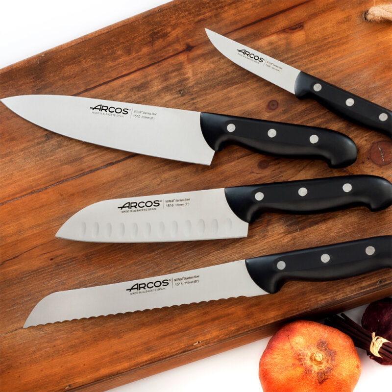 Лучшие цены. Страна изготовления Испания. Бренд ARCOS – это удивительное качество и хорошая цена, представленные в одном месте. Нож сантоку 17 см ARCOS Maitre, 151600 есть возможность приобрести поштучно по цене 2590 руб. руб. Все товары бренда ARCOS есть в наличии на складе. В случае продажи полного количества товаров, узнайте о поступлении у менеджеров нашего магазина. С легкими функциональными ножами из серии Maitre бренда Arcos каждый сможет почувствовать себя истинным мэтром в области кулинарии. Магазины в вашем городе.