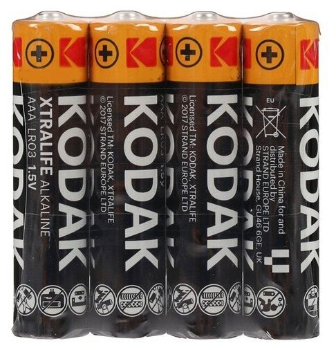 Батарейка алкалиновая Kodak Xtralife, AAA, LR03-4S, 1.5В, спайка, 4 шт.