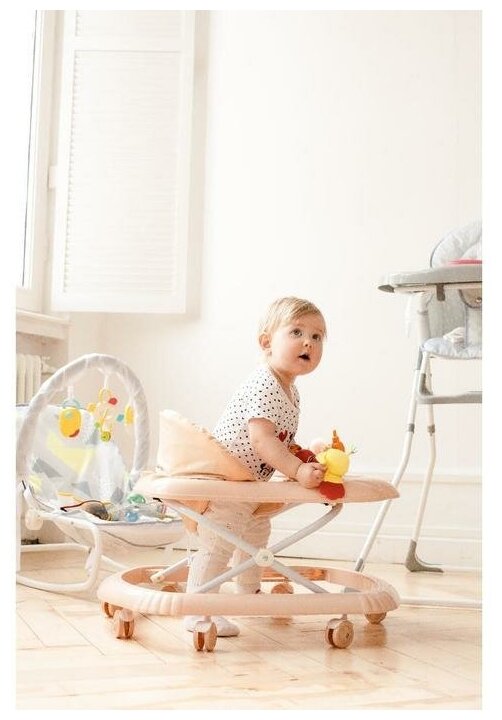 Лучшие цены. В комплекте 1 шт. Ваш малыш делает первые шаги? Ходунки помогут держать равновесие. Специальное приспособление развивает координацию, а его жёсткая спинка формирует правильную осанку. Учиться самостоятельно передвигаться совсем не скучно! Внимание крохи займёт игровая панель с яркими деталями и звуковыми эффектами. Данная модель имеет устойчивое основание на сдвоенных колёсиках. Широкий бампер защитит непоседу от столкновений с мебелью или другими предметами в квартире. Высота конструкции регулируется. Магазины в вашем городе.