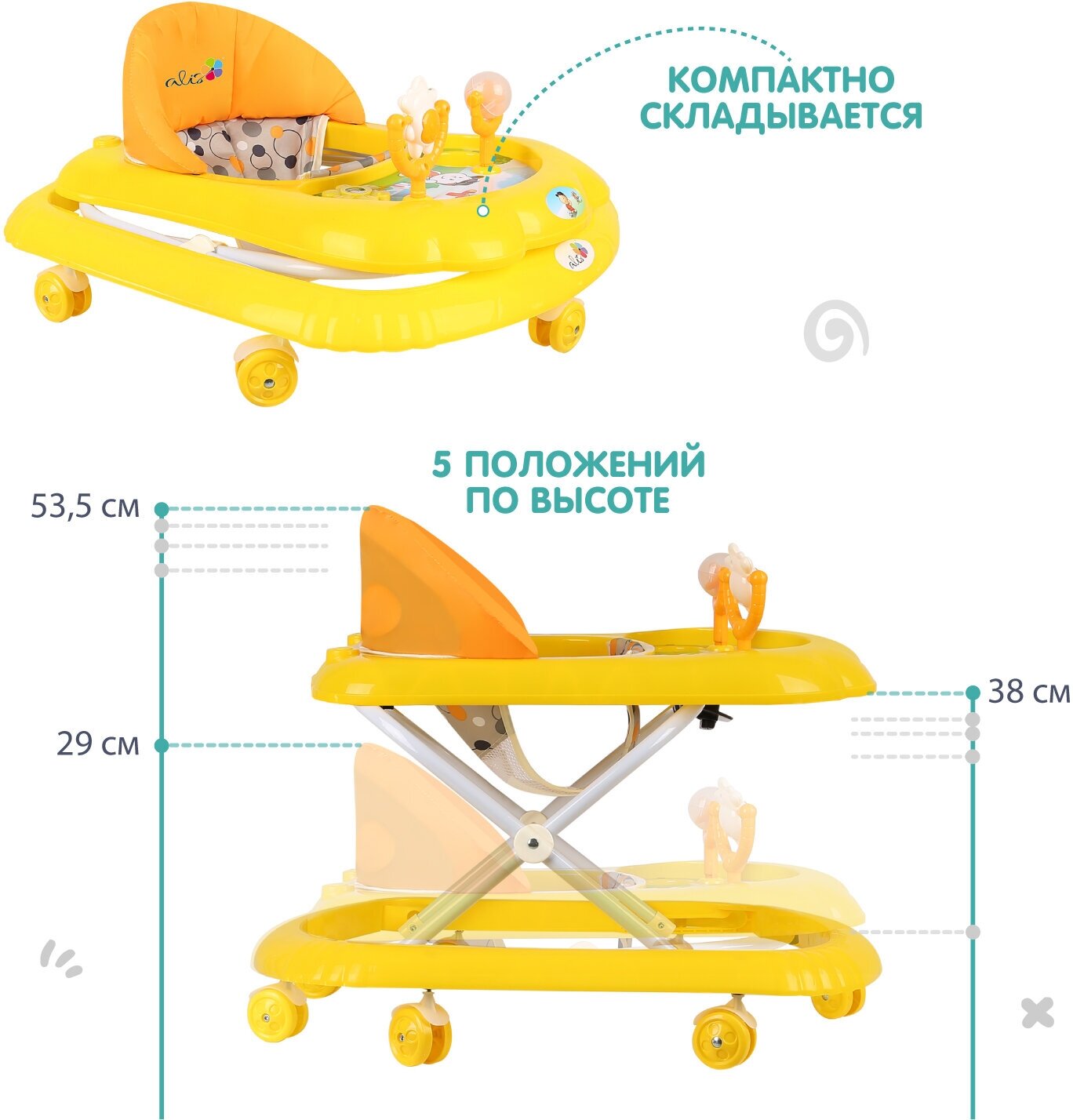 Ходунки "Верный друг", 7 колес, муз. игрушки, (Alis) (желтый)