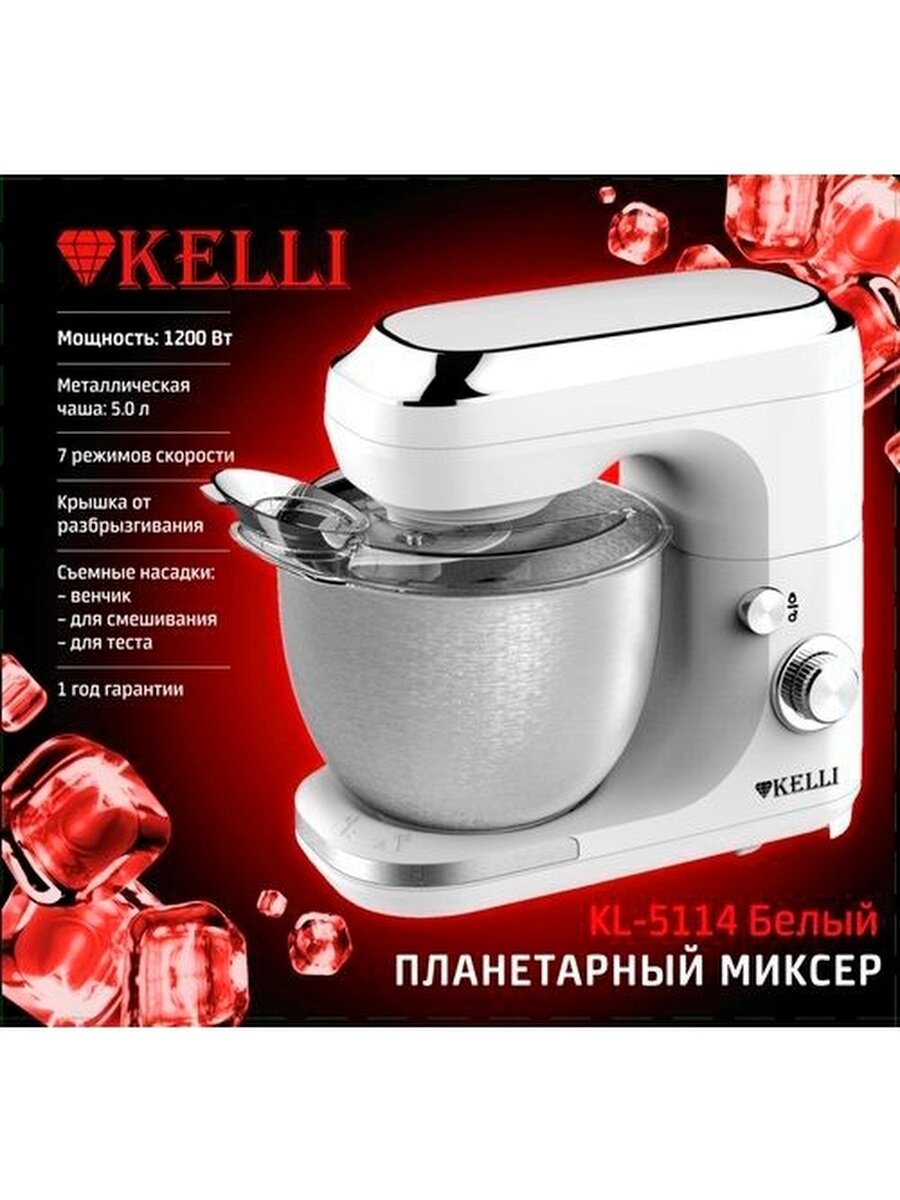 Миксер Миксер планетарный KELLI KL-5114 с чашей, белый