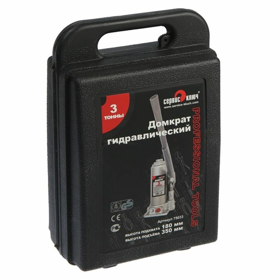 Домкрат Гидр.бутылочный 3Т Сервис-Ключ Подъем 180-350Мм. (Кейс) 75033 сервис ключ арт. 75033