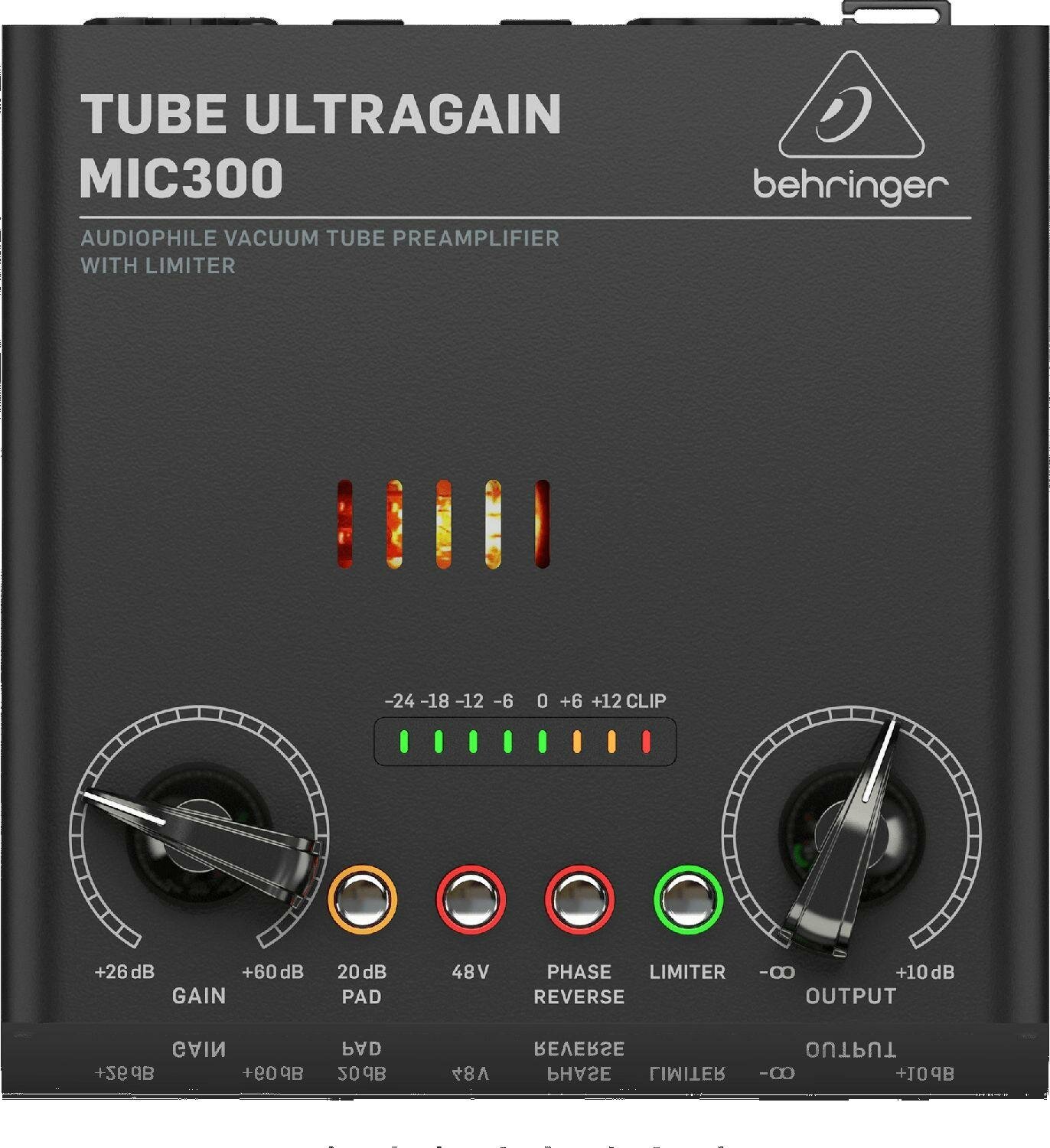 Behringer MIC300 ламповый микрофонно-линейный предусилитель с лимитером, лампа 12AX7