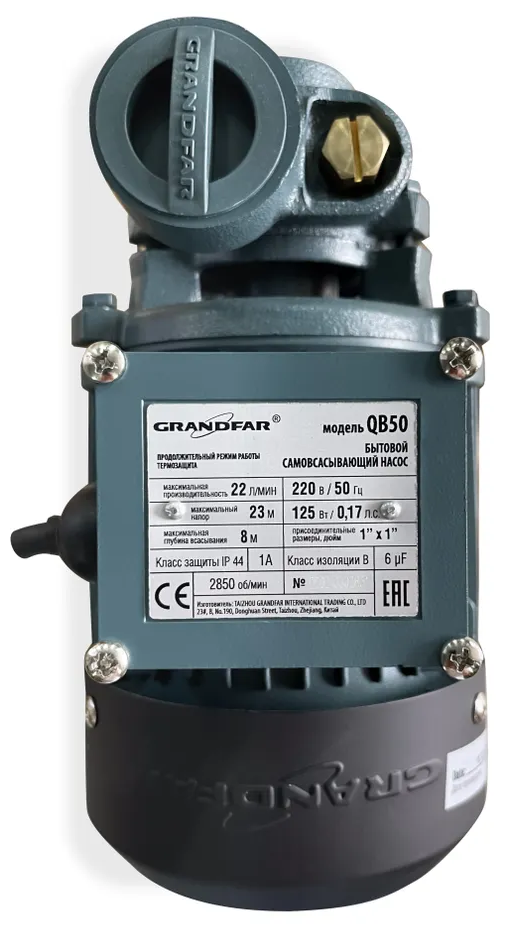 Лучшие цены. Насос поверхностный вихревой Grandfar QB-50 предназначен для перекачки пресной воды из колодцев, резервуаров и открытых водоемов, для полива садов, огородов, приусадебных участков, для подачи воды на верхние этажи зданий, для увеличения давления в системах автоматического водоснабжения и других подобных целей. Рабочая камера – из чугуна с медными вставками, предотвращающими блокировку крыльчатки, после длительного простоя. Крыльчатка - из латуни с радиально расположенными лопастями. Магазины в вашем городе.