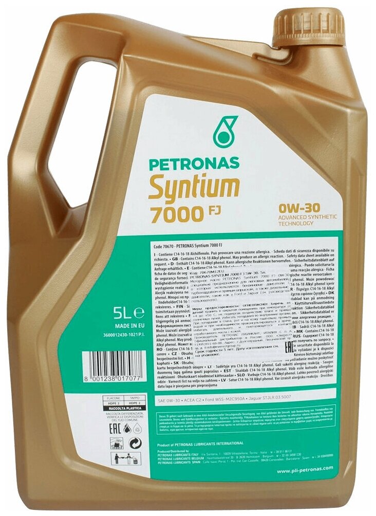 70670M12EU Моторное масло PETRONAS SYNTIUM 7000 FJ синт. 0W30, 5л,асеа С2 .Ford WSS-M2C950-A