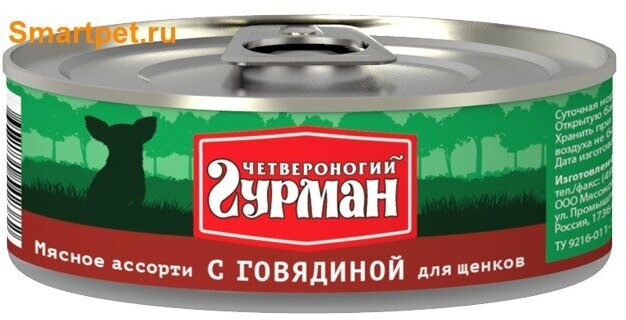 Четвероногий Гурман Консервы для щенков Мясное ассорти с говядиной, 340г 0.34 кг