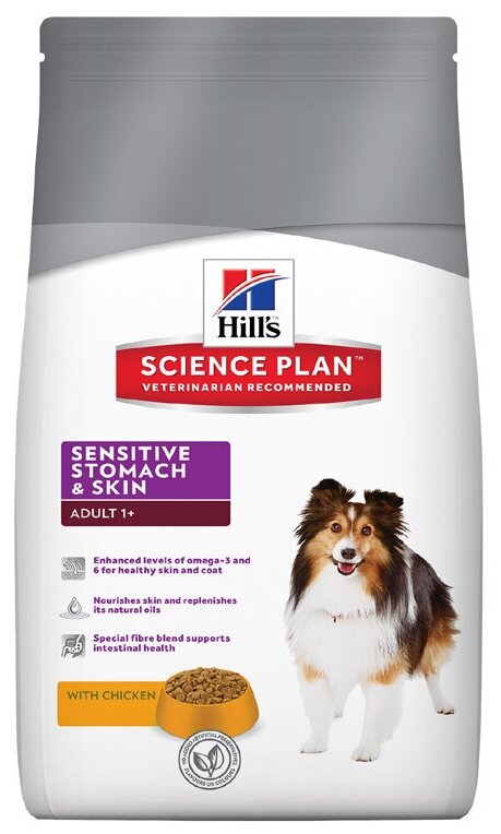 Сухой корм Hill's Science Plan Sensitive Stomach & Skin для взрослых собак средних пород с чувствительной кожей и/или пищеварением, с курицей 12 кг