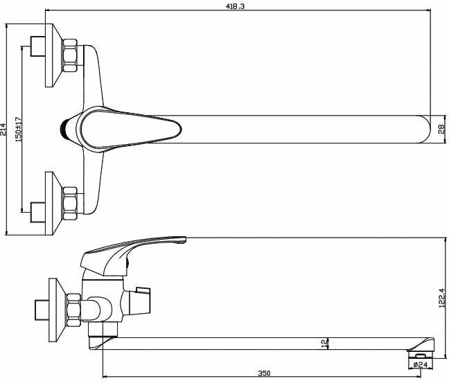 Смеситель для ванны с длинным изливом AVILA 02221AV