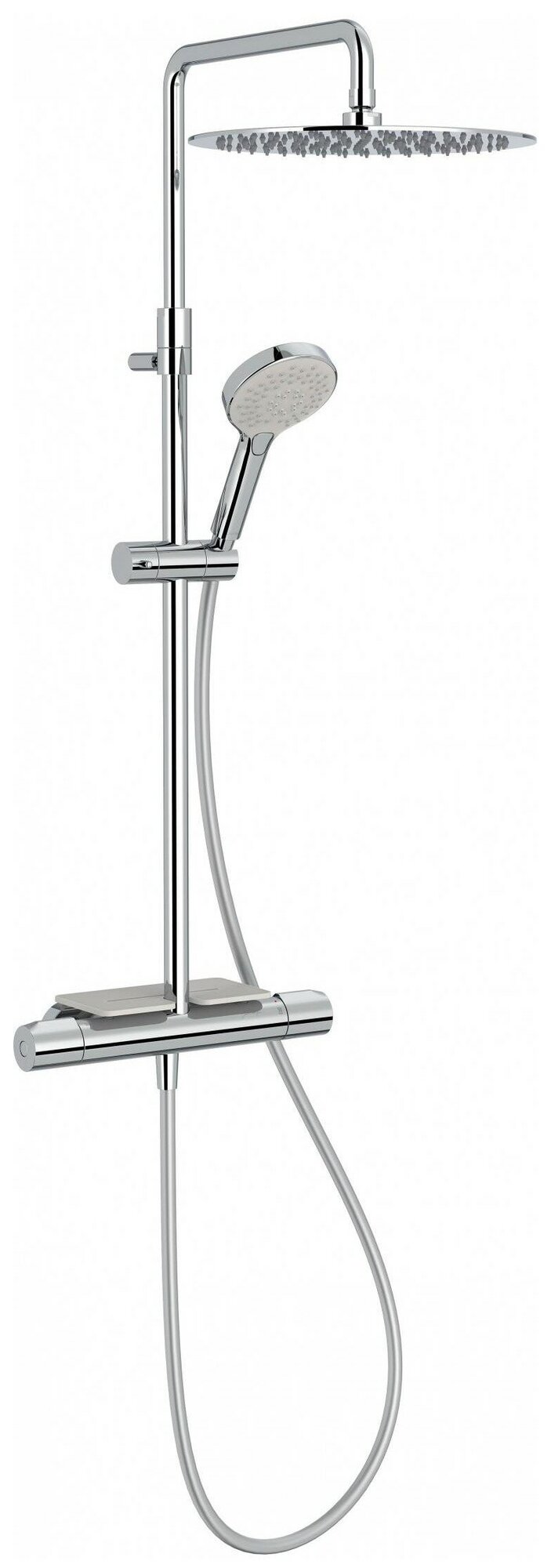 Душевая система без излива Jacob Delafon Metro, арт. E26589-CP, 3 режима, 30 см, round, термостат, верхний душ, с лейкой, с полкой