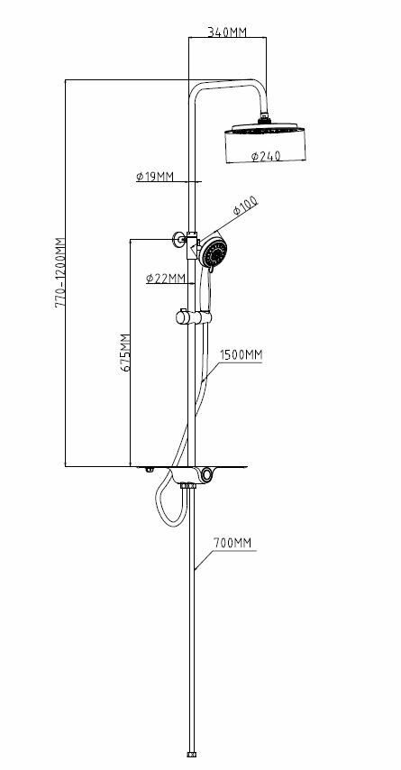 | Комплектация | ручной душ (душевая лейка) / верхний душ (тропический) / стойка / штанга / душевой шланг / крепление ручного душа / полка |