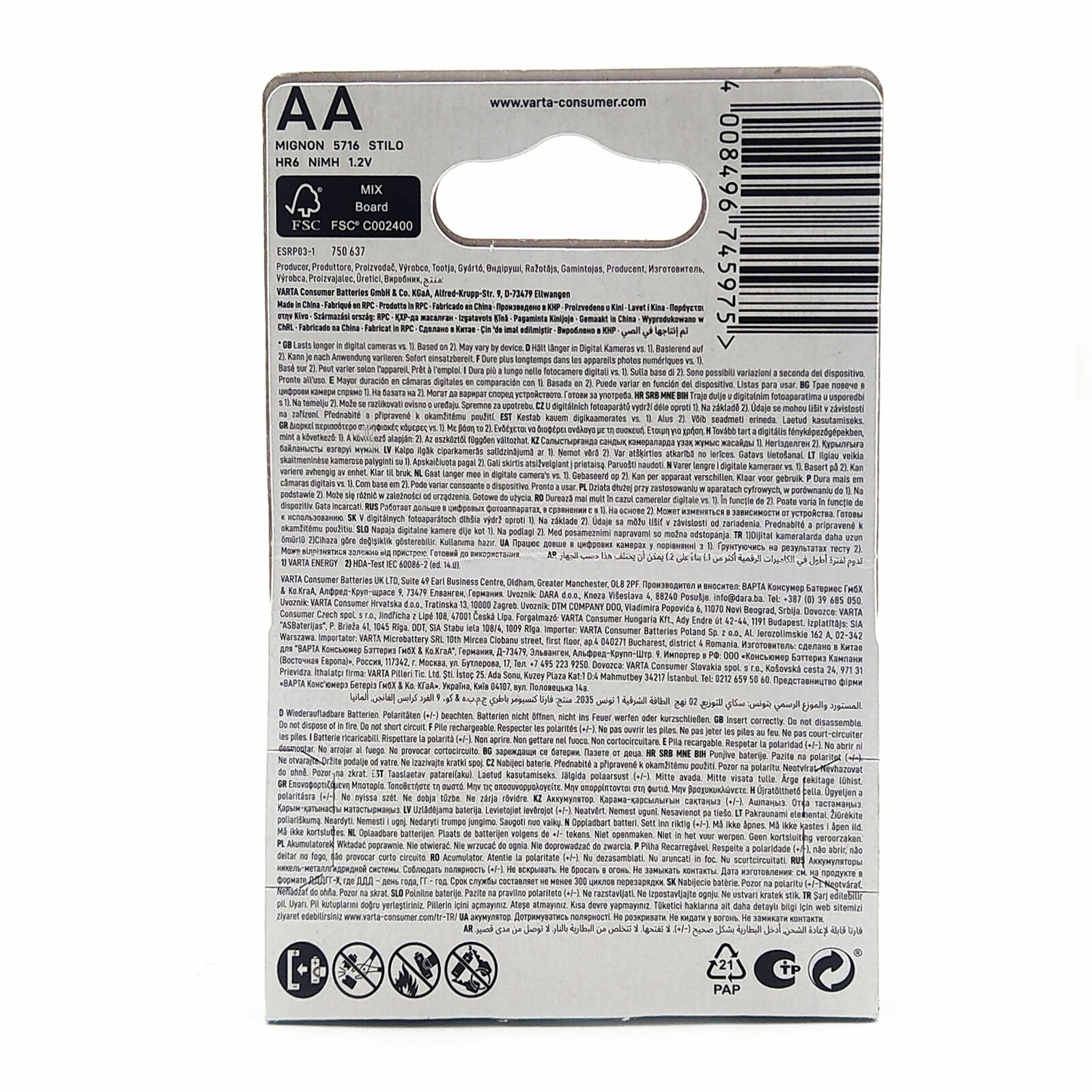 Аккумуляторы (4шт) VARTA HR6 AA Ni-MH 2600mAh 5716