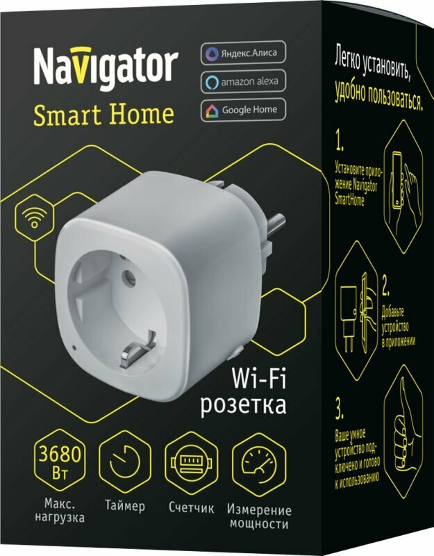 NAVIGATOR Адаптер-переходник 16А 14 555 Smart Home NSH-ST-01-WiFi "Умная розетка" с управлением по WI-FI бел. NAVIGATOR 14555