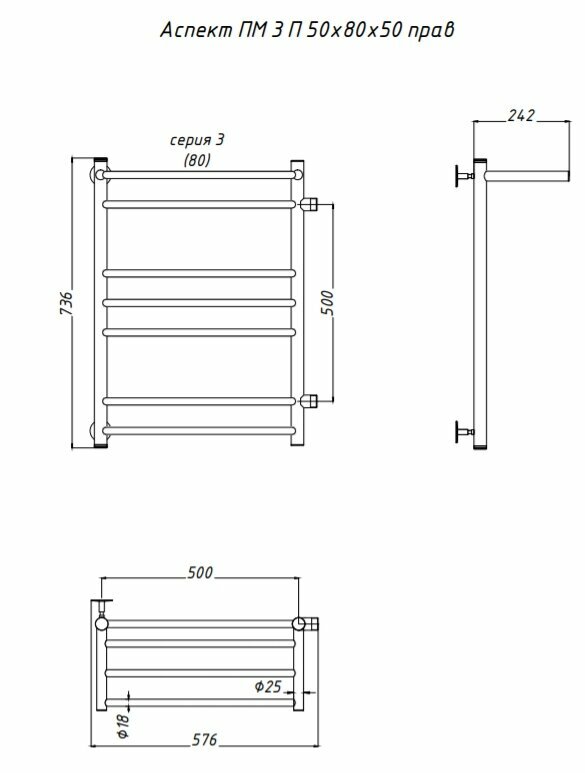 Полотенцесушитель Тругор Аспект ПМ 3 П 50*80*50 (ЛЦ6) правый