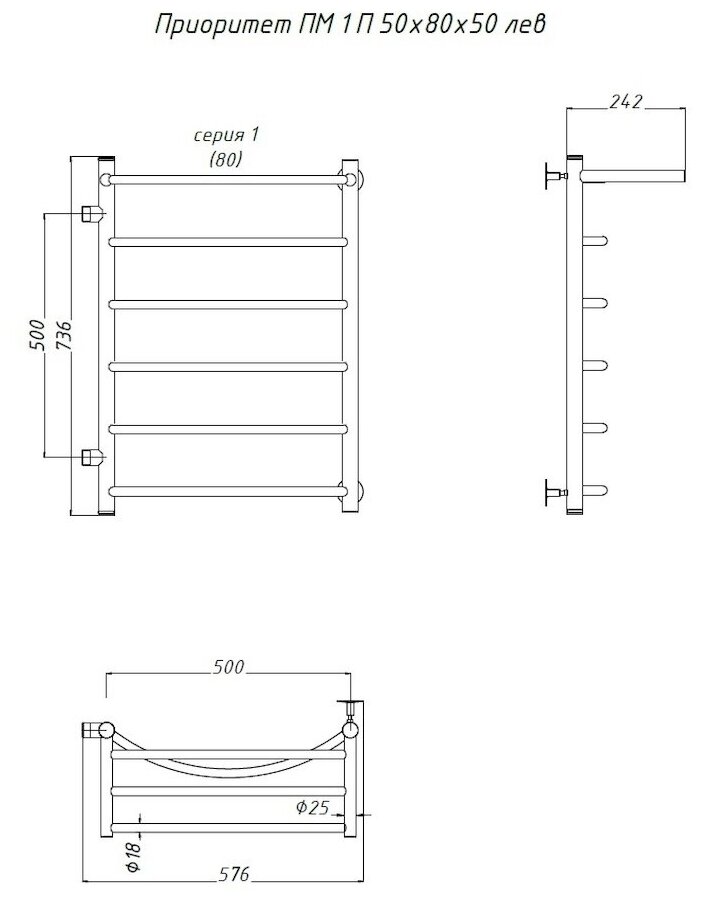 Полотенцесушитель Приоритет ПМ 1 П 50*80*50 (ЛЦ2) левый