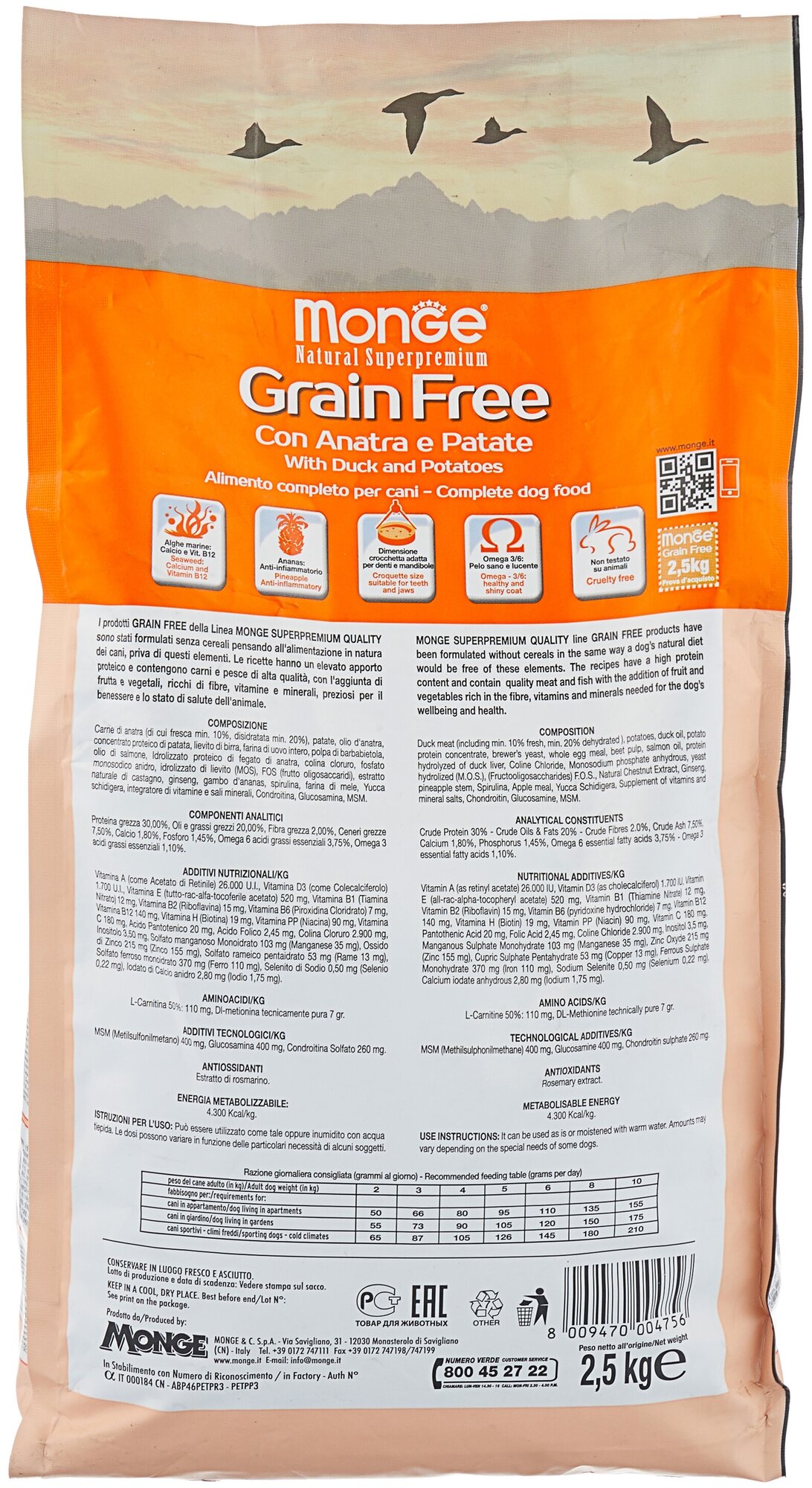 Сухой корм Monge Dog GRAIN FREE Mini для собак мелких пород беззерновой с уткой и картофелем 2,5кг