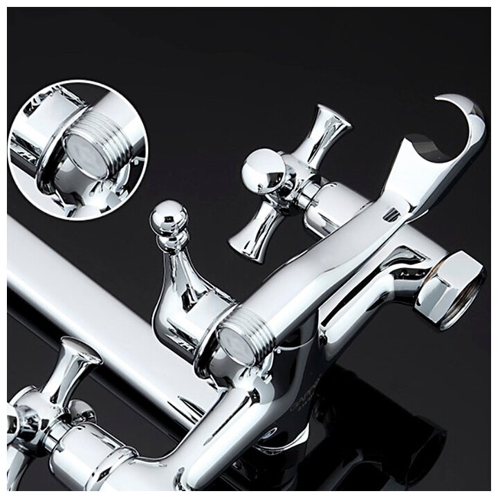 | Комплектация | ручной душ (душевая лейка) / верхний душ (тропический) / смеситель / стойка / штанга / душевой шланг / крепление ручного душа |