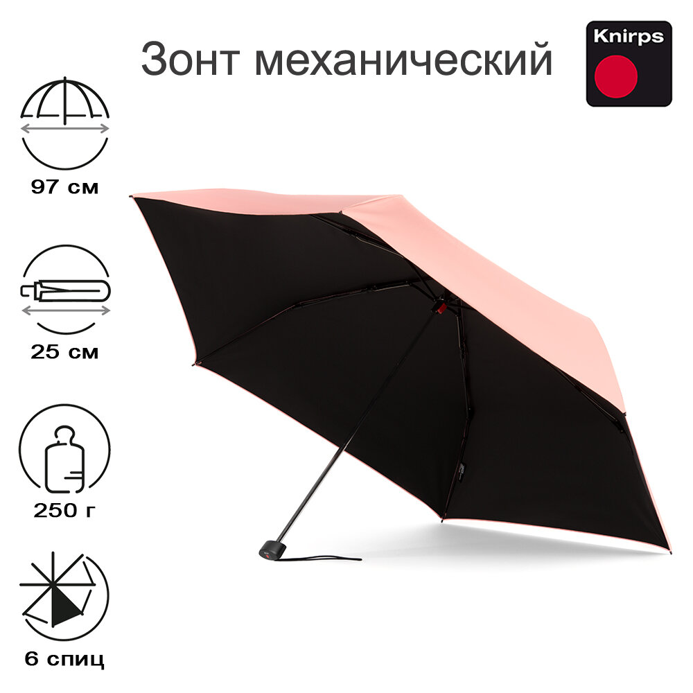 Зонт Зонт Knirps механический AS.050 Slim Small Manual CORAL BLACK COATING INSIDE UV PROTECTION HEATSHIELD 95 9050 2460