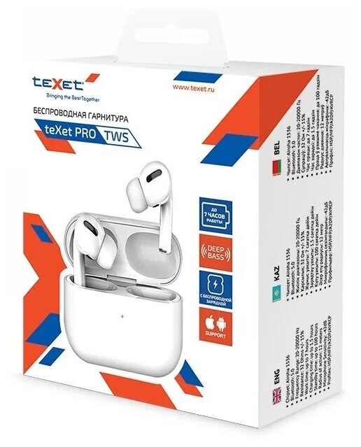 Беспроводные Наушники TWS teXet PRO белые