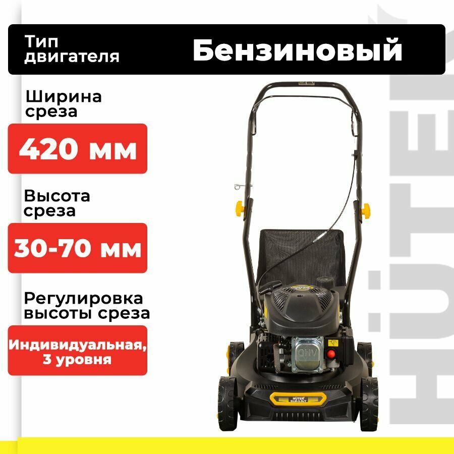Газонокосилка бензиновая Huter GLM-3.5 LT, 4 л.с., ширина/высота 42 см/25-75 мм, 1 л