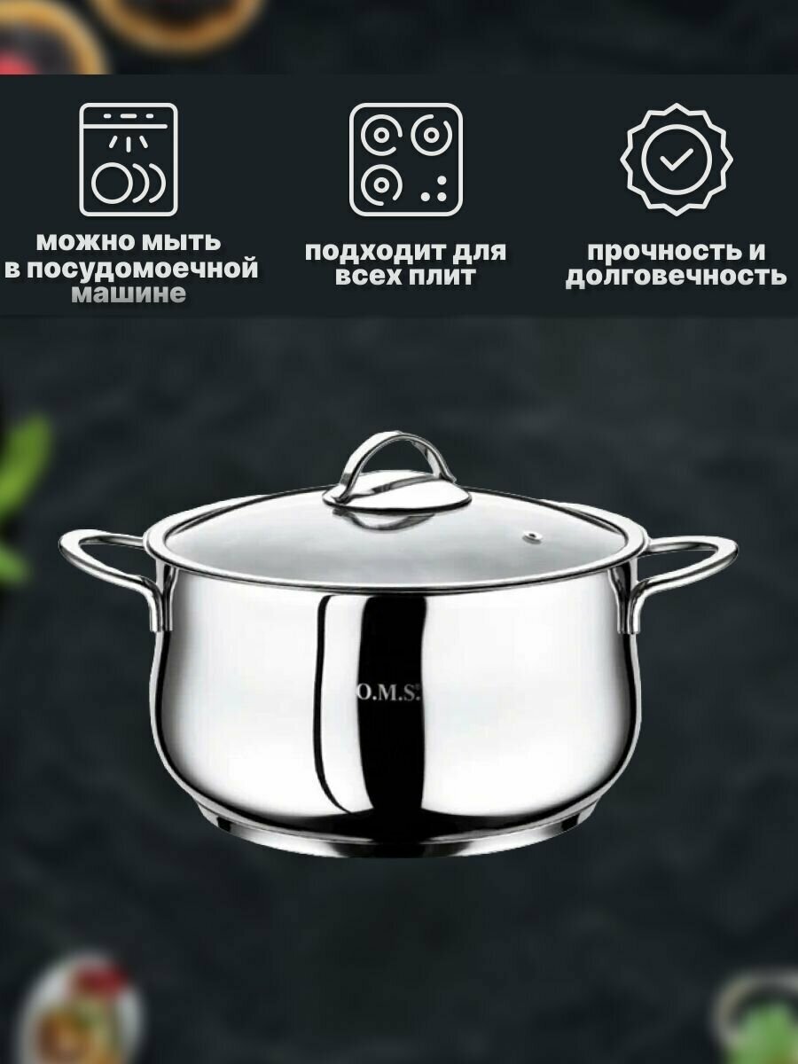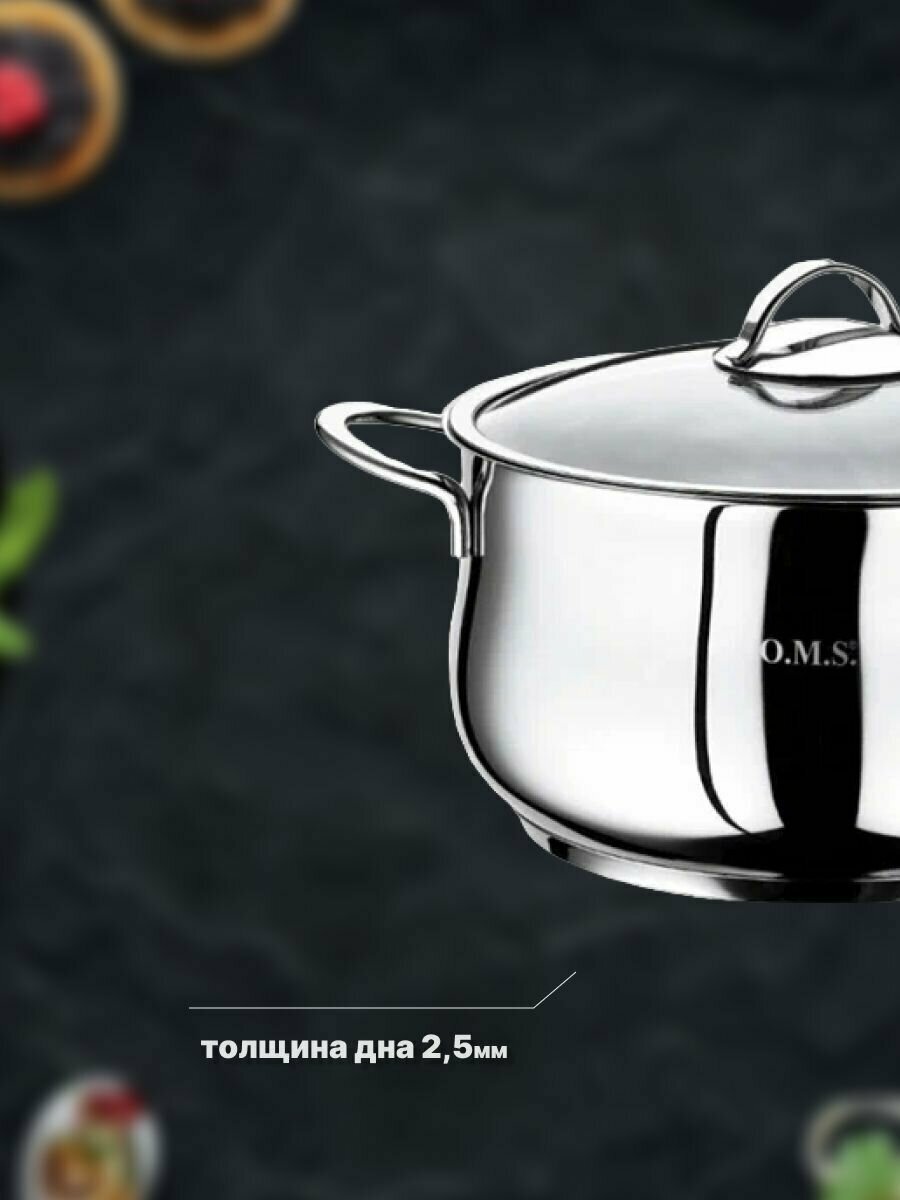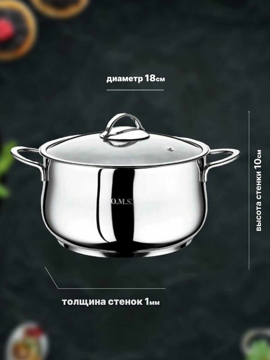 Кастрюля Кастрюля из нержавеющей стали 2,3л с крышкой 18 см. O.M.S. Collection. Подходит для всех типов плит включая индукционные плиты.