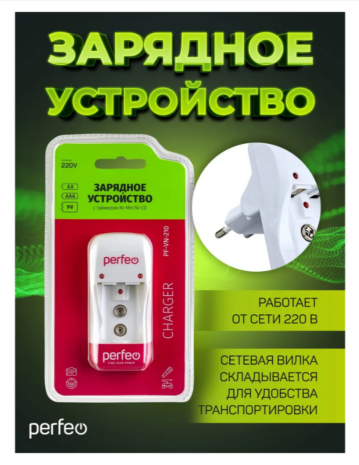 Лучшие цены. Зарядное устройство Perfeo PF-VN-210 это надёжный источник энергии для подзарядки аккумуляторов формата AA/AAA. Модель совместима с различными типами аккумуляторов и позволяет в кратчайшие сроки восстановить их работоспособность. Несколько каналов заряда, реализованных Perfeo PF-VN-210 дают возможность сразу несколько аккумуляторов. Для оповещения пользователя об уровне заряда элементов питания в конструкции гаджета предусмотрена световая индикация. Магазины в вашем городе.