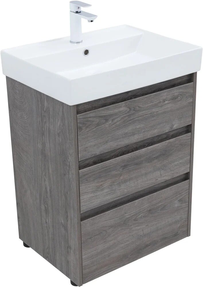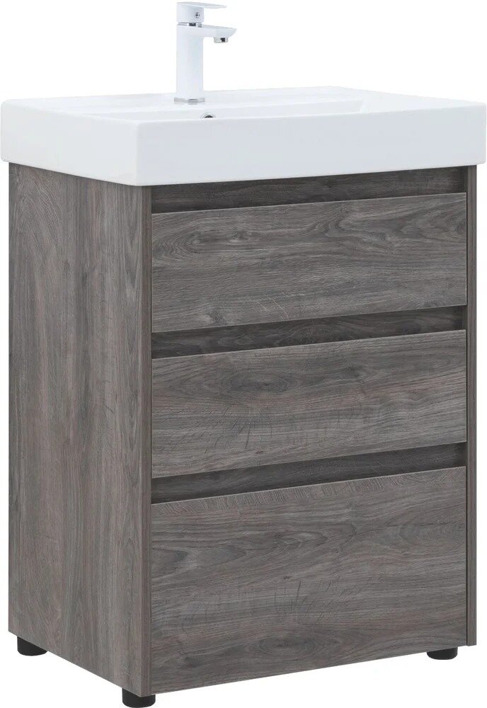 Умывальник Тумба с раковиной Aquanet Nova Lite 60 напольная, дуб рошелье, 3 ящика