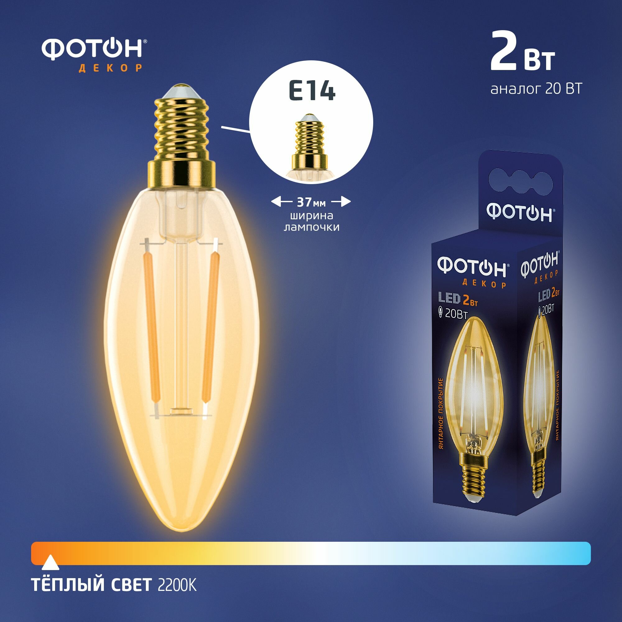 Фотон Светодиодная лампа фотон LED FL B35 2W E14 2200K, серия декор 22625