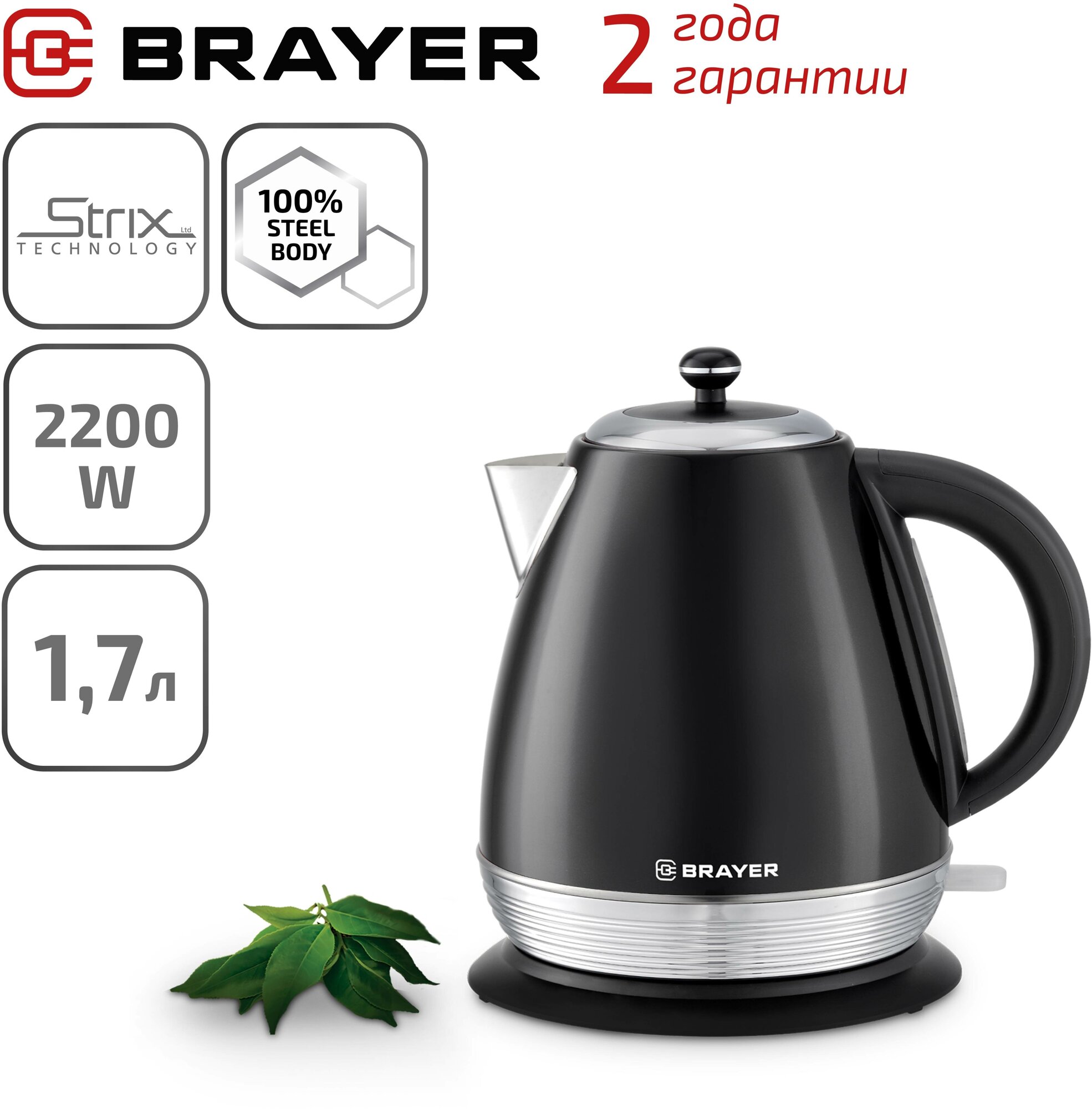 Электрический чайник BRAYER BR1006, 2200 Вт, 1.7 л BR1006