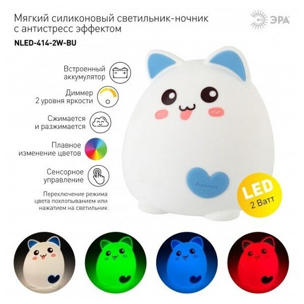 Светильник ночник ЭРА "Мягкий" NLED-414-2W-BU белый с синим Б0041093