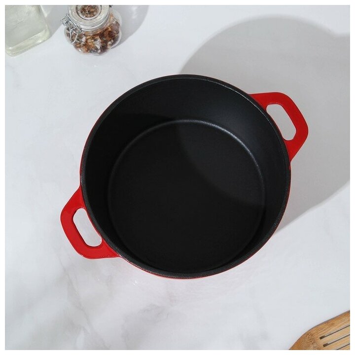 Лучшие цены. Кастрюля чугунная Volcano, 26×20×12,5 см, для подачи, цвет красный Посуда из чугуна с эмалированным покрытием - это мечта каждой хозяйки! В пользу классического приспособления говорят его долговечность, универсальность применения и возможность использования металлических лопаток. Чем ещё хороша такая посуда? образует естественный антипригарный слой; быстро и равномерно распределяет тепло; подходит для всех типов плит; имеет гладкую поверхность и низкие стенки. Магазины в вашем городе.