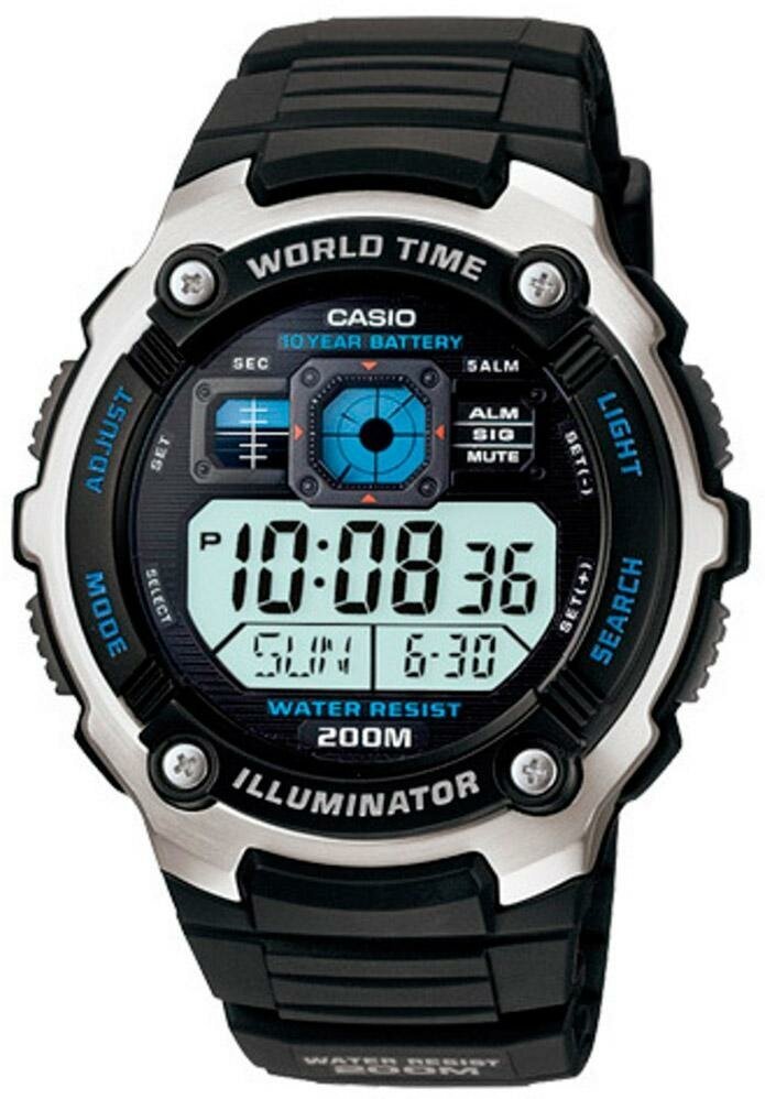 Лучшие цены. Мужские японские наручные часы Casio Collection AE-2000W-1B. Кварцевый механизм с высокой точностью +/- 30 сек в месяц. Для подсветки дисплея используется светодиод. Секундомер с высокой точностью в 1/100 секунды с измерением до 24 часов. Для поклонников точности таймер обратного отсчета напомнит Вам о любых событиях, издав звуковой сигнал в установленное время, предел измерения от 1 секунды до 24 часов. 5 независимых будильников. Магазины в вашем городе.
