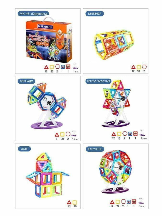 Конструктор Магникон магнитный конструктор Карусель - 46 деталей