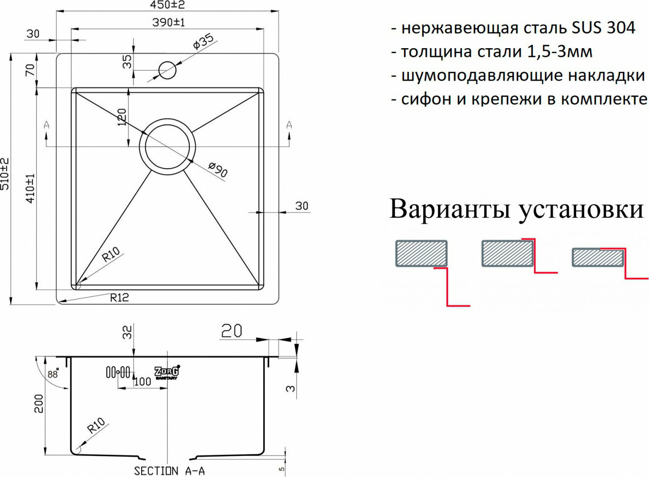Лучшие цены. Мойка кухонная ZORG INOX A 4551 BR/GRAFIT. Магазины в вашем городе.