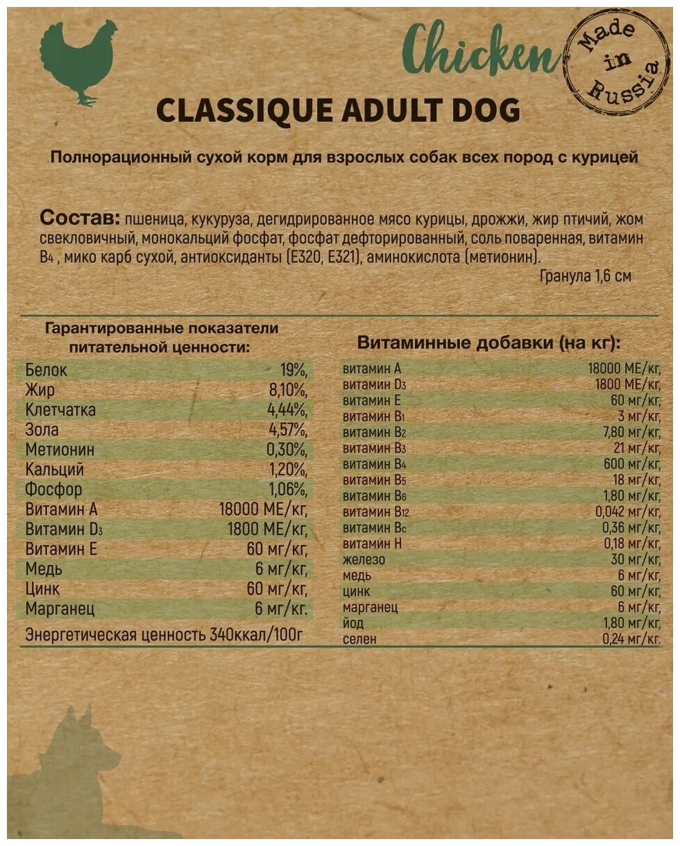 Cухой корм Frais Classique Adult Dog, для взрослых собак всех пород, с курицей, 15 кг 3 920 ₽ Подробнее