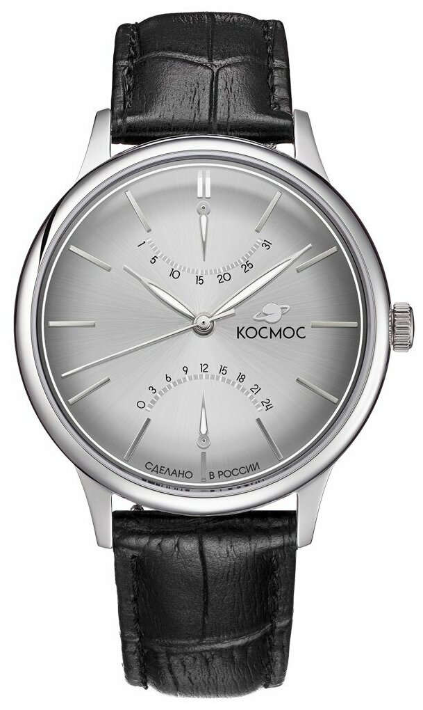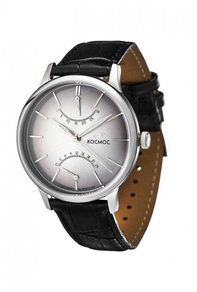Лучшие цены. Часы Космос с кварцевым механизмом необычны по нескольким причинам. Во-первых, корпус из гипоаллергенной нержавеющей стали в профиль напоминает летательный аппарат. Этот эффект достигается благодаря выгнутым задней крышке и циферблату, а так же сферическому минеральному стеклу. Во-вторых, в окраске циферблата применили градиент: стальной цвет по краям более насыщенный, чем в центре. Магазины в вашем городе.