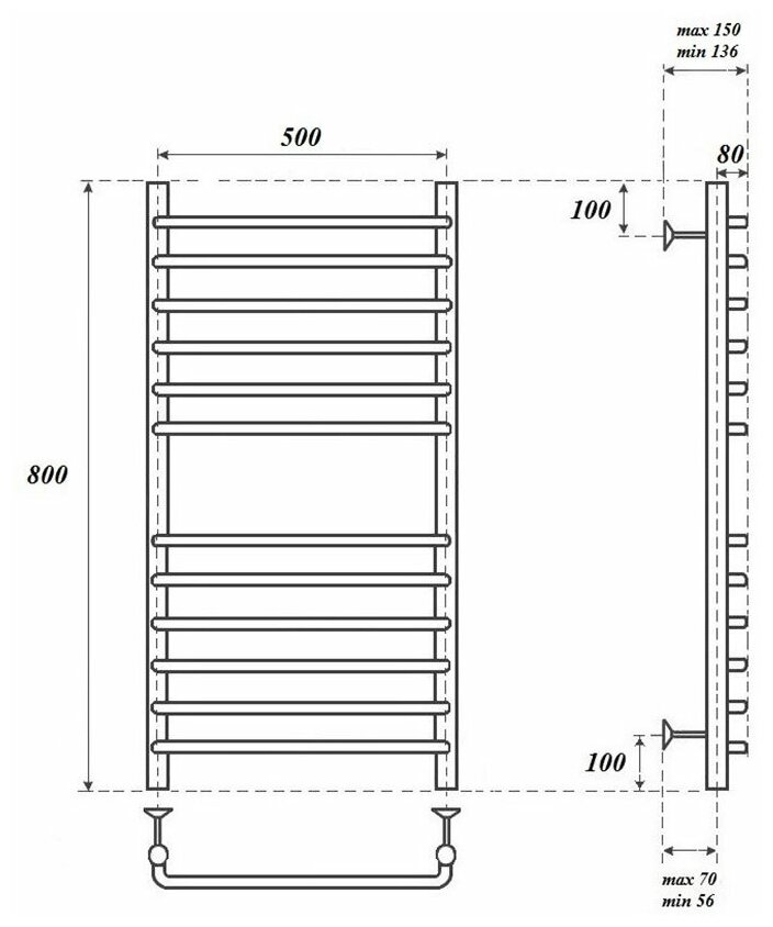 Полотенцесушитель водяной 500x800 POINT Вега (PN71558 П7)