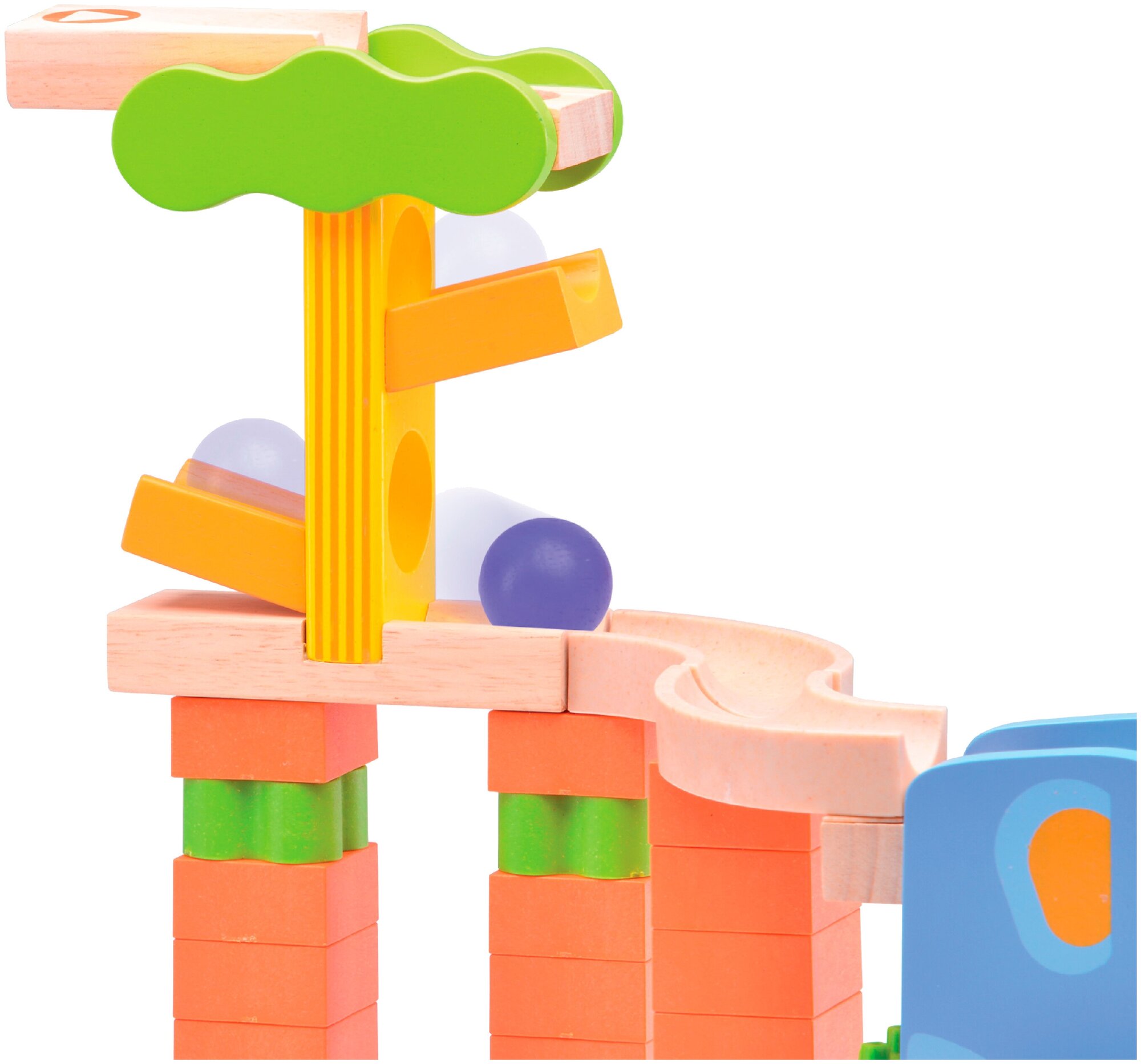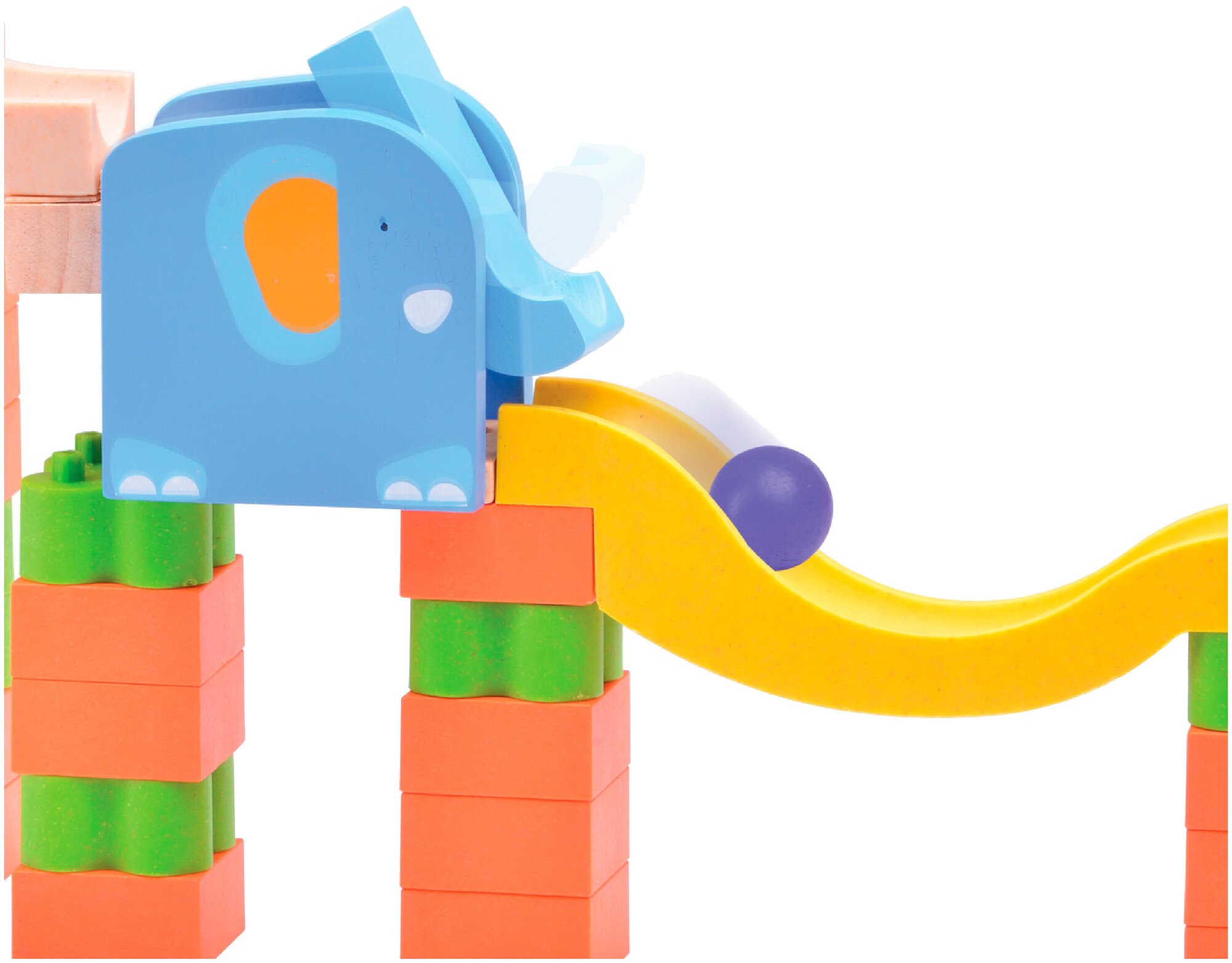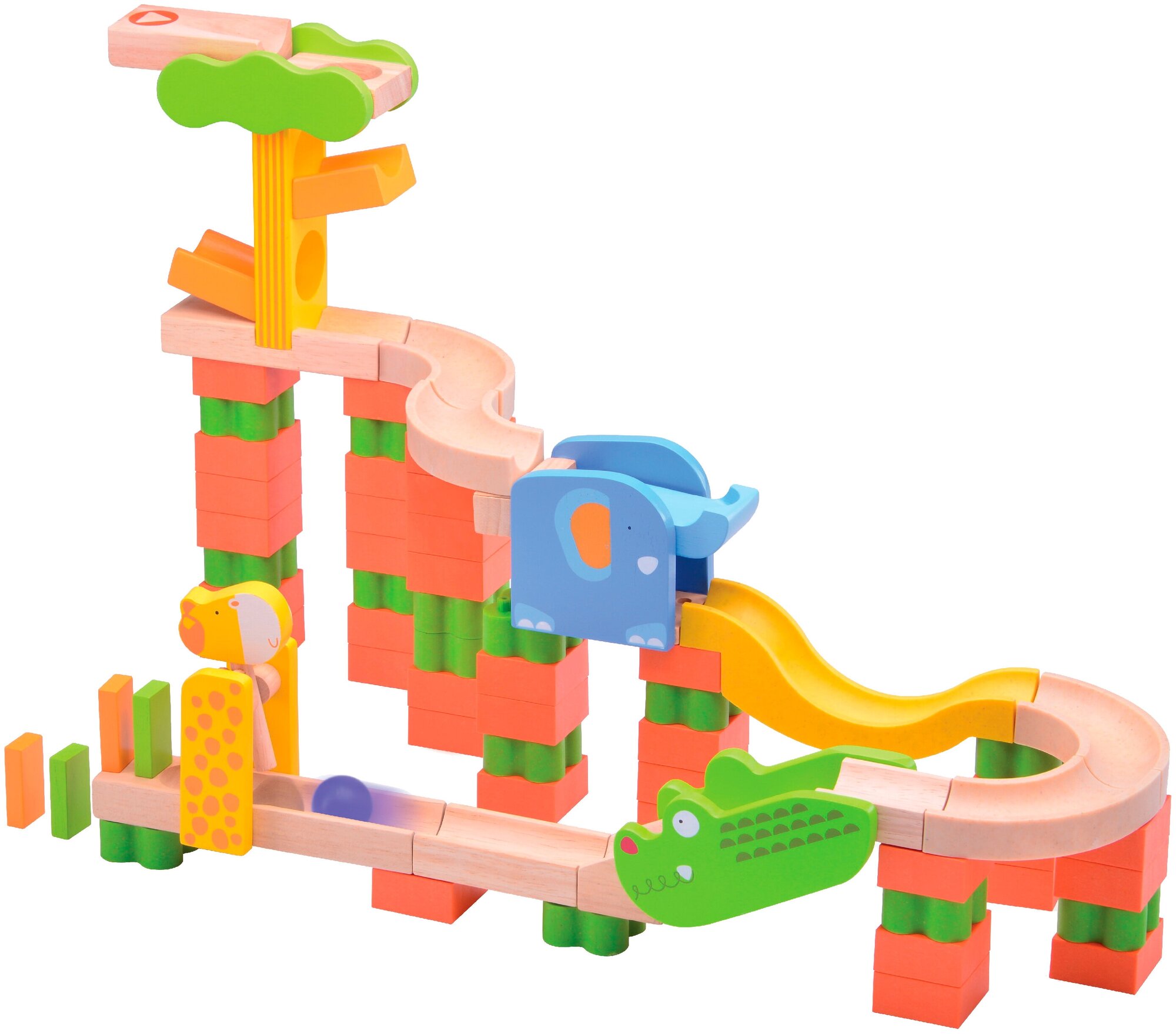 Лучшие цены. Игрушка лабиринт в стиле "Сафари" из прочной каучуковой древесины для детей от 3х лет. Лабиринт собирается легко и прочно. Кинетическая энергия и кульбиты шариков, катящихся по сафари-лабиринту увлекут и малышей, и взрослых. В наборе конструктора "Сафари" 65 элементов, включая блоки опор, разноуровневые поворотные желобы трека и игровые узлы для веселых кульбитов: прыжки по баобабу, горка с переворотом на хоботе слоненка, горка с прыжками по спине крокодила и задорный пинок от высокого. Магазины в вашем городе.