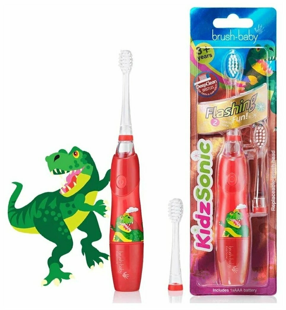 Электрические зубные щетки Звуковая зубная щетка Brush-Baby KidzSonic Динозавр