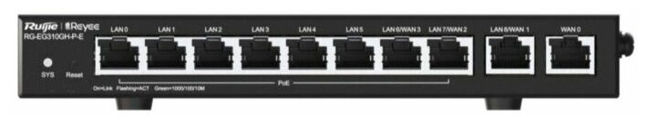 Маршрутизатор RUIJIE NETWORKS RG-EG310GH-P-E Desktop 10-port full gigabit router, providing one WAN port, six LAN ports, and three LAN/WAN ports; supp