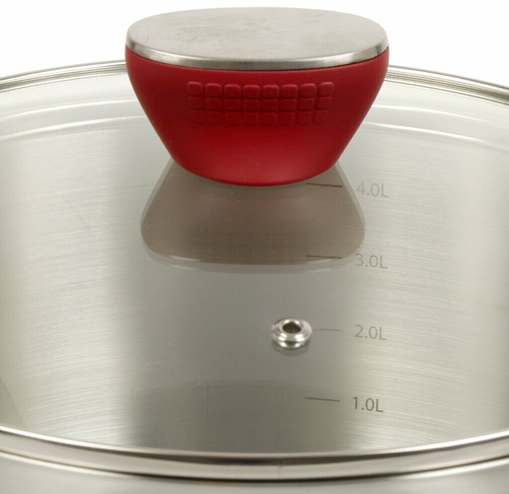 Лучшие цены. Кастрюля из нержавеющей стали «Грейси» TR-17288 5,3 л (старый артикул TR-7288) Диаметр: 24 см. Высококачественная нержавеющая сталь марки 18/10 (AISI 304). Полировка внешняя - матовая, внутренняя - матовая. Крышка из жаропрочного стекла с отверстием для выхода пара. Особая форма ручки на крышке позволяет использовать ее как подставку для столовых и поварских приборов. Бакелитовые ненагревающиеся ручки с soft-touch покрытием. Есть отметки литража. Магазины в вашем городе.